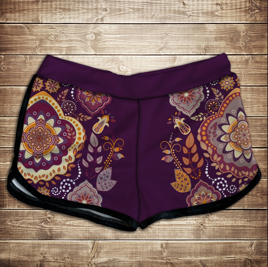 Шорти жіночі з 3D принтом на тему: Індійські орнаменти. Фіолетовий тон