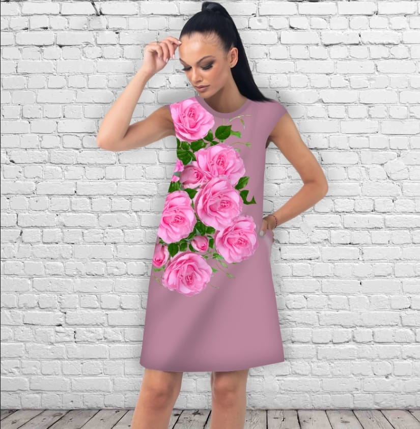 Сукня А-силуету з принтом Рожеві троянди на рожевому тліСукня А-силуету з принтом Рожеві троянди на рожевому тлі