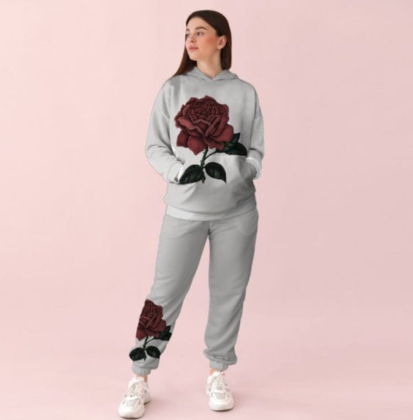 Жіночий білий спортивний костюм із принтом велика червона троянда 0_083Жіночий білий спортивний костюм із принтом велика червона троянда 0_083