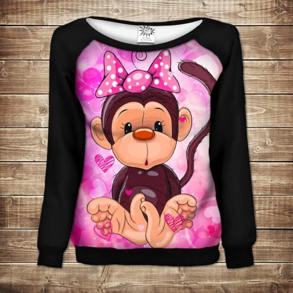 Жіночий світшот-реглан з 3D принтом на тему: Веселі мавпочки РожевийЖіночий світшот-реглан з 3D принтом на тему: Веселі мавпочки Рожевий
