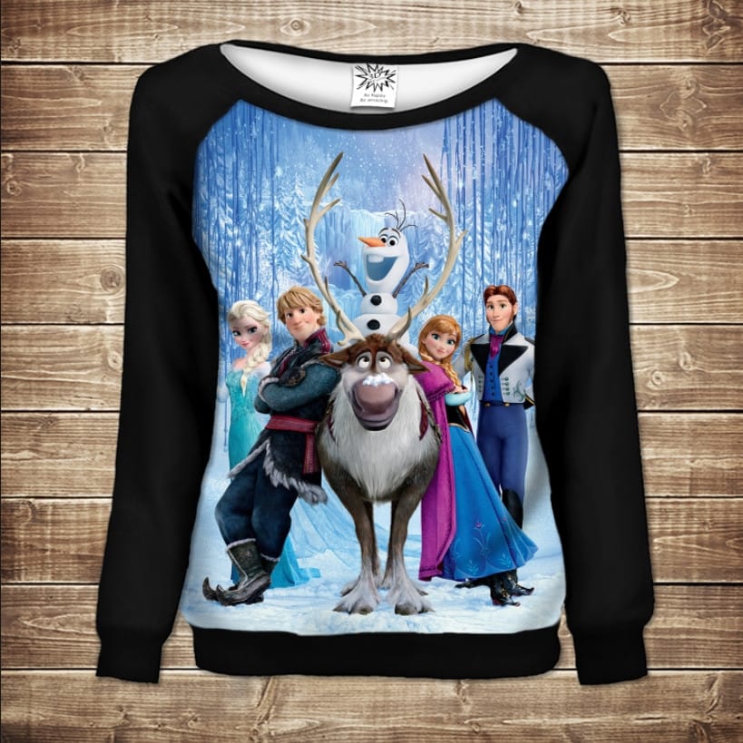 Жіночий світшот – реглан з відкритими плечима з 3D принтом-Frozen. Холодне серце Всі герої